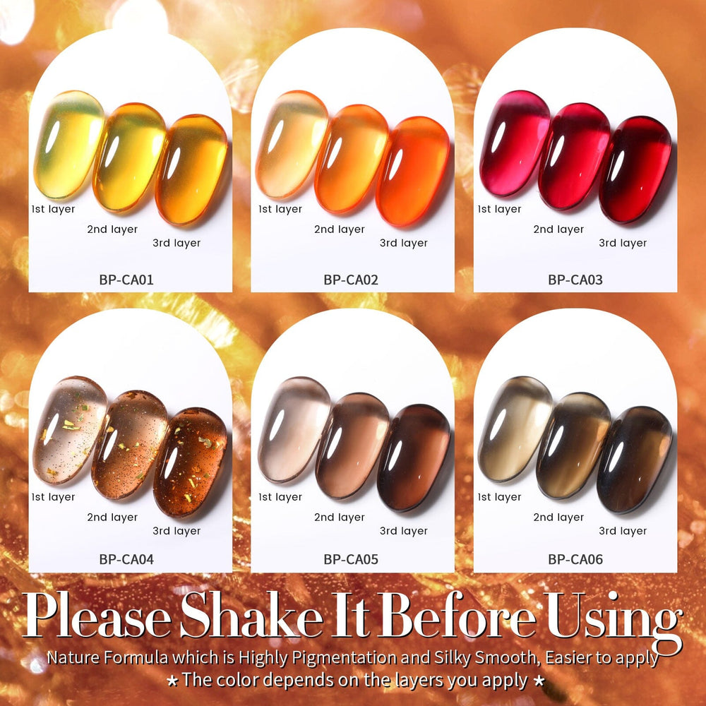 - Translucent Amber Shades: Six beautiful jelly colors that evoke the warm glow of amber crystals.