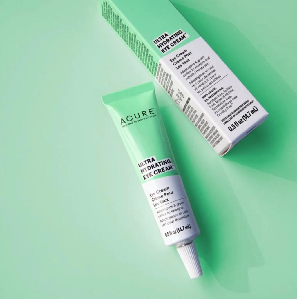Acure Hydrating Eye Cream is a rejuvenating eye treatment formulated to wake up and refresh the delicate under-eye area. Infused with coffee seed oil, adaptogenic botanicals, and antioxidant-rich plant extracts, it helps reduce puffiness, hydrate, and support healthy-looking skin. Perfect for daily use, this lightweight cream nourishes and protects sensitive under-eye skin while leaving it soft and revitalized.