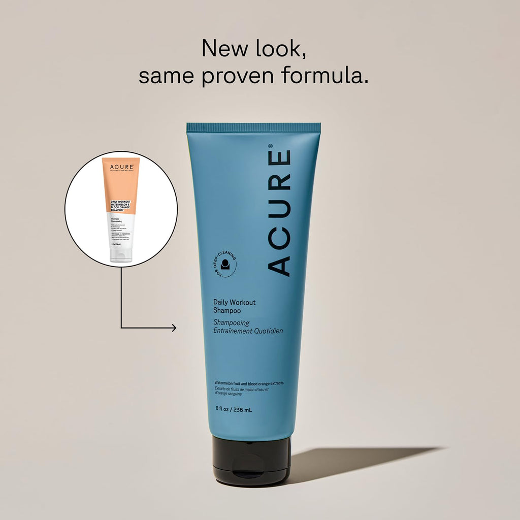 Acure Daily Workout Watermelon Shampoo gently cleanses and nourishes all hair types while invigorating the scalp with natural watermelon extract. Formulated with fruit extracts, aloe, and essential oils, it restores moisture, boosts shine, and leaves hair soft and refreshed. Vegan, cruelty-free, and free from sulfates, parabens, and harsh chemicals.