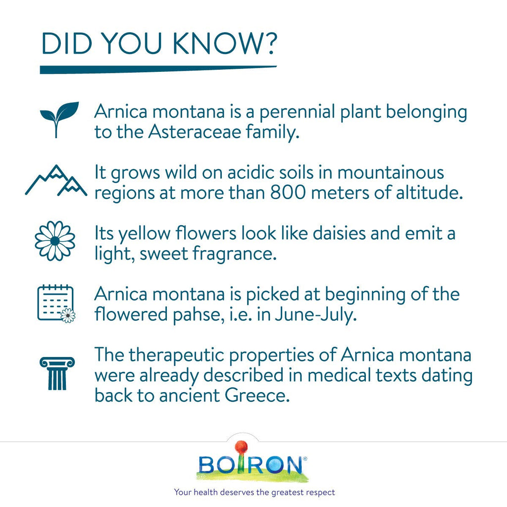 Boiron Arnica Montana 200CH Blister is a homeopathic medicine designed to support natural health and recovery. Each pack contains three tubes, with approximately 80 quick-dissolving pellets (4 g) per tube. Suitable for adults, children, and infants, it provides precise dosing with a hygienic pellet dispenser and a portable design for convenience at home or on the go.