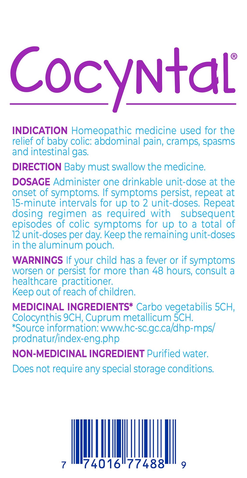 Boiron Cocyntal is a homeopathic medicine designed to help relieve baby colic symptoms, including abdominal pain, cramps, spasms, and intestinal gas. Developed for babies aged 1–6 months, each dose comes in a sterile, drinkable 1 ml unit packaged in convenient aluminum pouches. With no sugar, dyes, or preservatives, Cocyntal provides a safe and effective solution for soothing your baby’s discomfort. The portable single-dose pouches make it easy to have extra doses on hand at home or on the go.