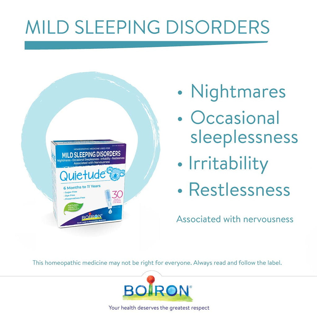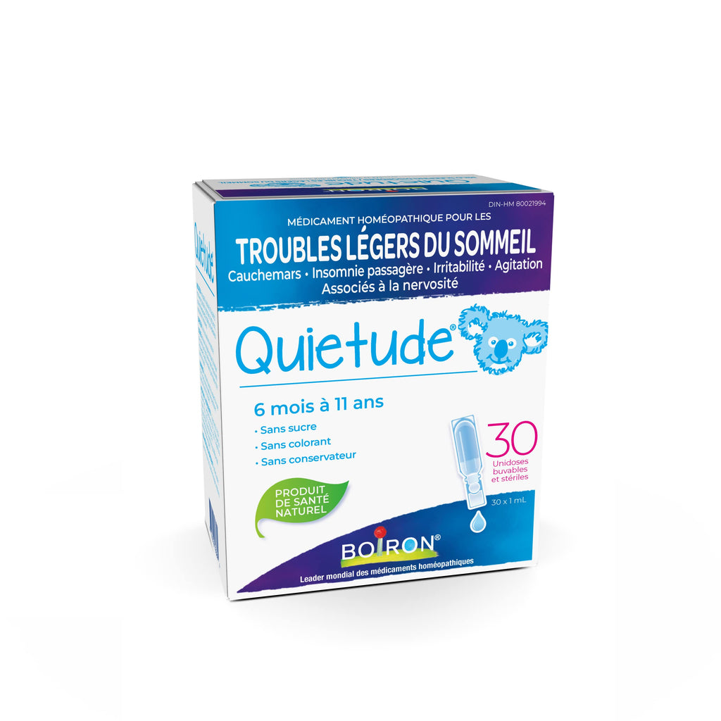 Boiron Quietude 30 Unit-Doses is a homeopathic medicine designed for children to help relieve mild sleeping disorders, irritability, restlessness, and nervousness-related symptoms. Packaged in sterile, single-use aluminum unit-doses, this remedy is convenient for on-the-go use. Quietude is sugar-free, dye-free, and preservative-free, providing safe and gentle relief for children.