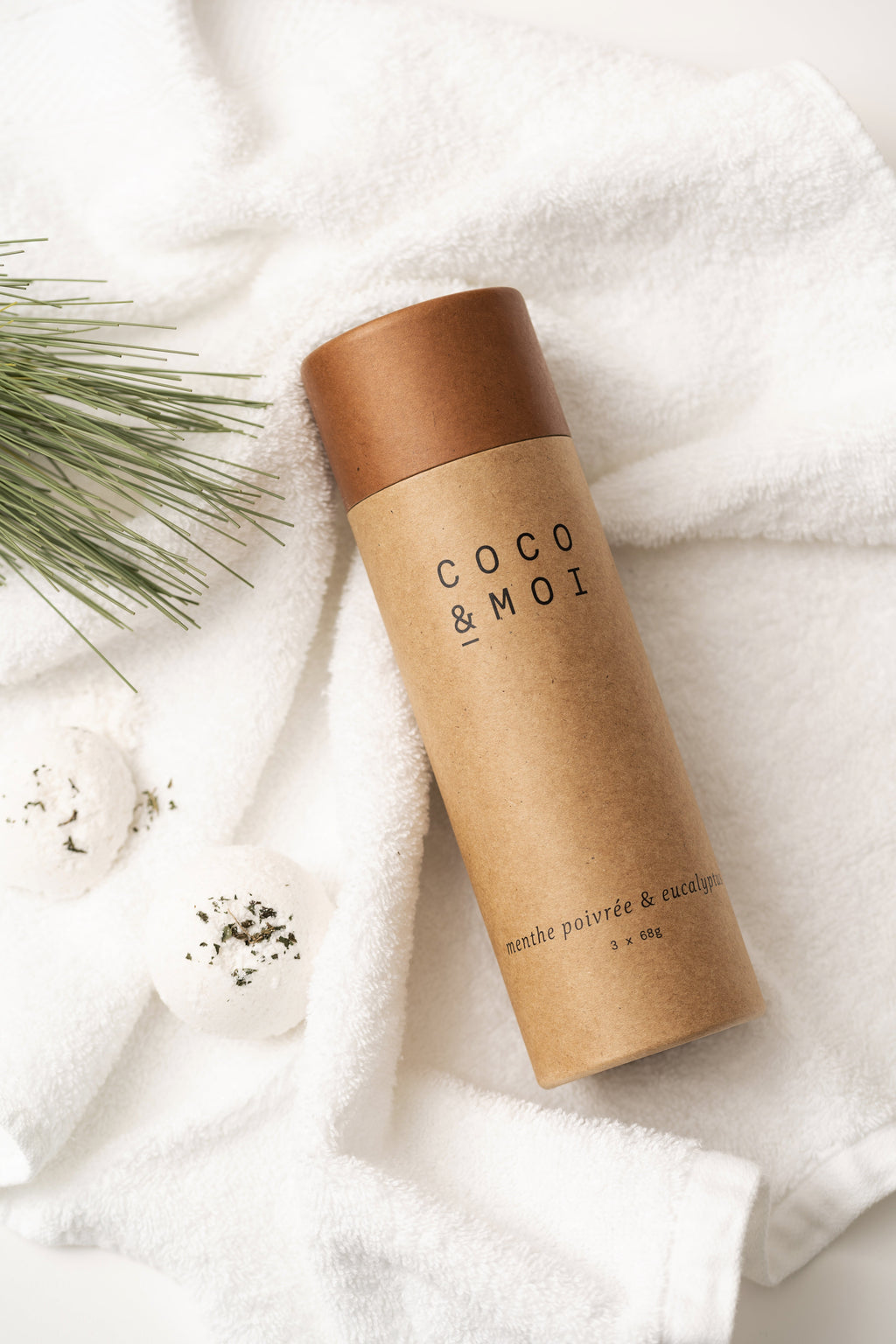 Ingrédients : Sulfate de magnésium, Huile de Cocos Nucifera (noix de coco), Poudre de Maranta Arundinacea (fécule d’arrow-root), Acide citrique, Bicarbonate de sodium, Eau d’Hamamelis Virginiana, Aqua, Huile de Mentha Arvensis, Huile de feuilles d’Eucalyptus Globulus, Feuilles de Mentha Arvensis