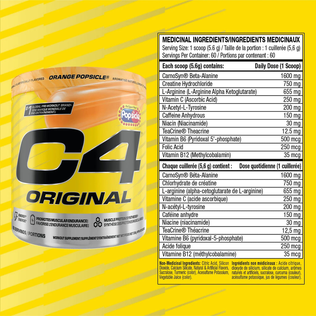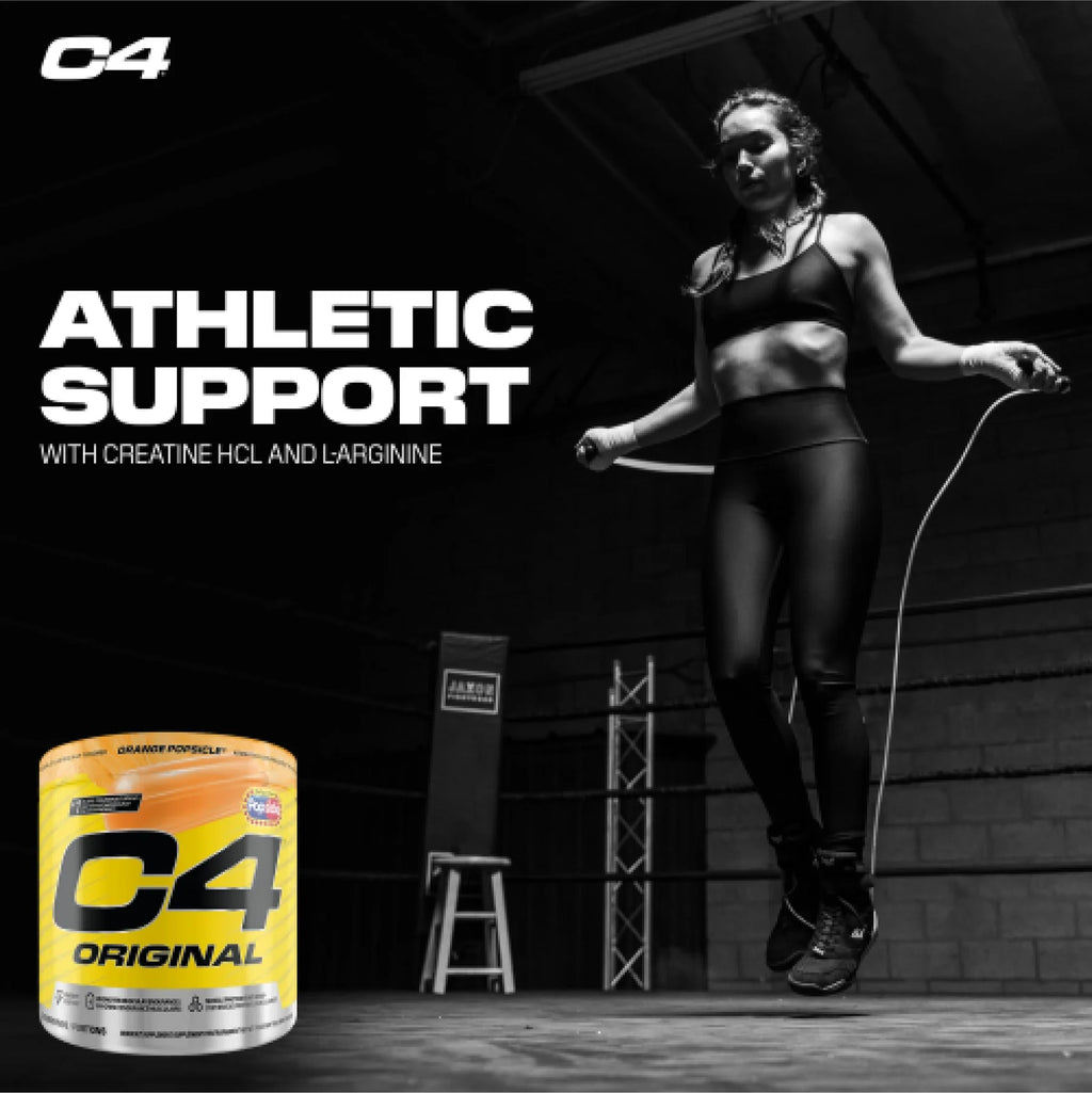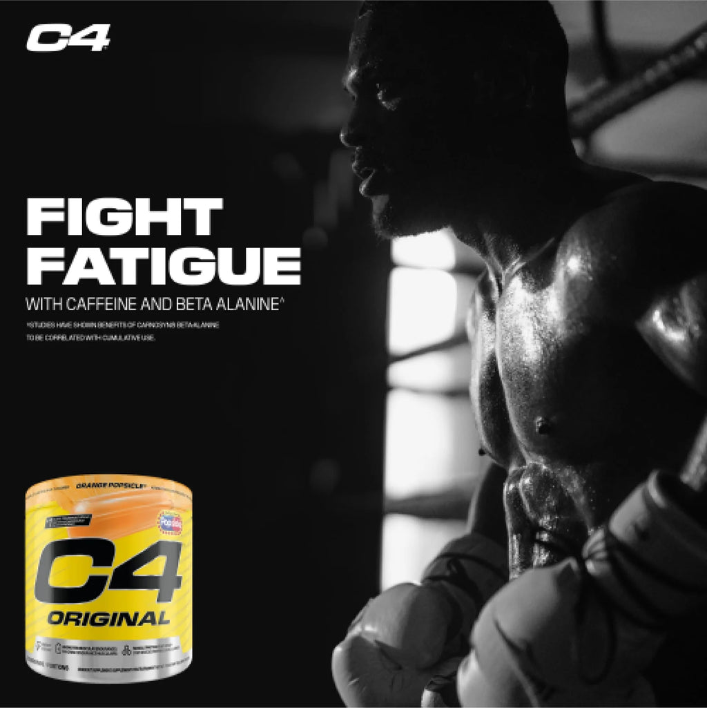 Cellucor C4 Original Pre Workout Powder is a high-performance, sugar-free pre-workout designed for men and women to maximize energy, endurance, and strength. Each serving contains 150 mg of caffeine, CarnoSyn® Beta-Alanine, creatine nitrate (NO3-T™), L-Arginine, and other clinically studied ingredients to support muscular endurance, fight fatigue, and enhance lean muscle growth. Its fun Orange Popsicle flavor makes every workout enjoyable.