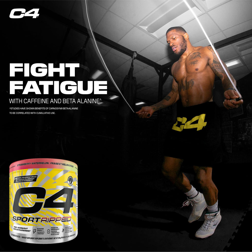 Cellucor C4 Sport Ripped Thermogenic Pre Workout Powder is a high-performance pre-workout supplement designed to deliver hard-hitting energy, enhance muscular endurance, and support fat metabolism. Featuring 135mg caffeine, L-Carnitine Tartrate, and clinically studied CarnoSyn® Beta-Alanine, this Informed-Choice Certified formula helps athletes maximize performance while promoting metabolism. Enjoy zero-sugar, delicious flavors trusted by third-party tested athletes.