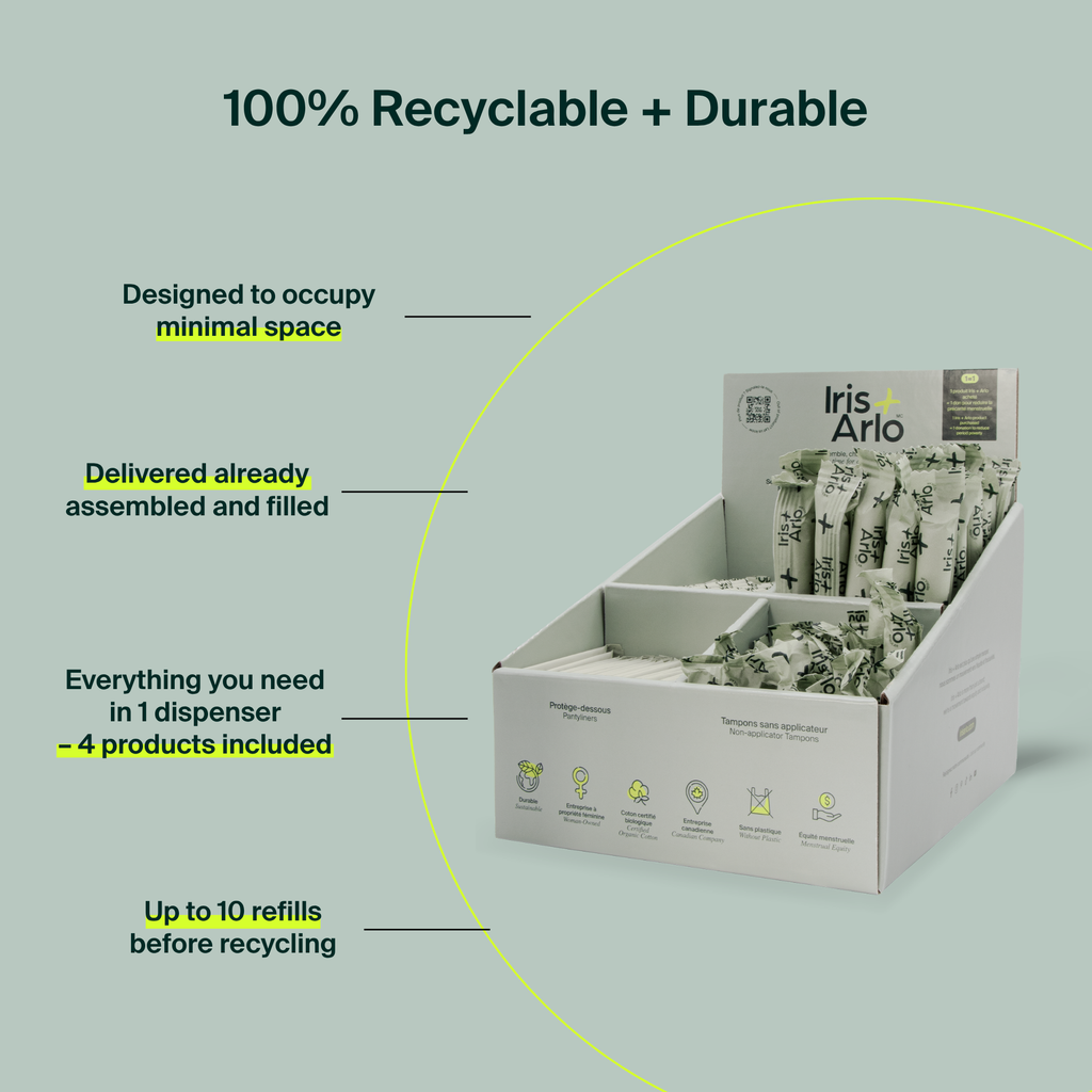 Accommodates any disposable menstrual product assortment, including tampons and pads