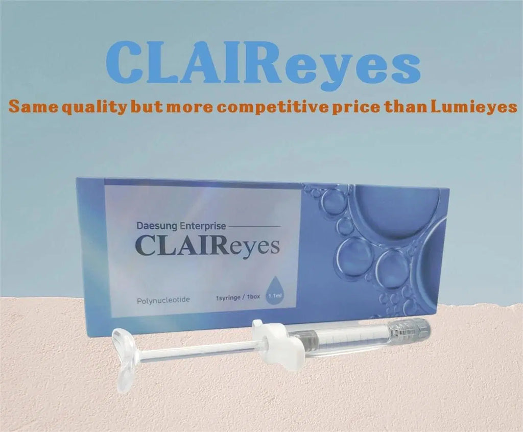 Clair Eyes is an advanced under-eye rejuvenation injectable formulated with Sodium Polynucleotide (PN) and PDRN technology to effectively reduce dark circles, smooth under-eye wrinkles, and restore youthful vitality to the delicate eye area. This powerful 1.1ml skin booster works by stimulating collagen production, enhancing skin regeneration, and deeply hydrating tired, thin under-eye skin. Designed specifically for dark circle correction and fine line reduction, Clair Eyes improves elasticity, brightness, and overall skin texture, delivering a refreshed, rested, and radiant appearance. It is an ideal non-surgical solution for under-eye anti-aging and skin revitalization treatments.