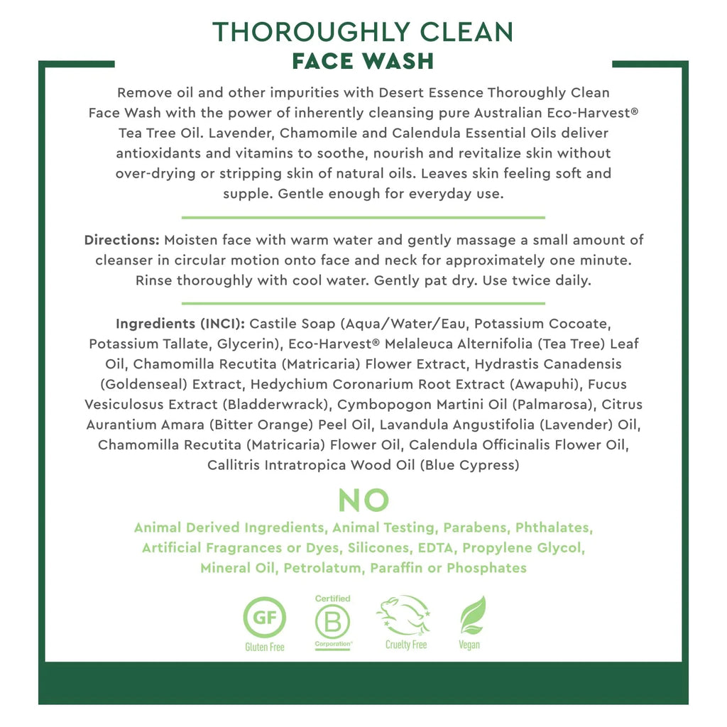 Desert Essence Thoroughly Clean Face Wash is a gentle, natural cleansing solution designed to leave your skin feeling silky, smooth, and refreshed. Enriched with organic tea tree oil, a natural antiseptic, it cleanses without stripping or tightening the skin. The formula includes soothing extracts of goldenseal, Hawaiian white ginger (awapuhi), and chamomile essential oil, along with mineral-rich bladderwrack harvested from the sea. Regular use helps improve skin texture, clarity, and radiance. This pack contains 3 bottles of 240 ml each, ideal for retail or bulk use.