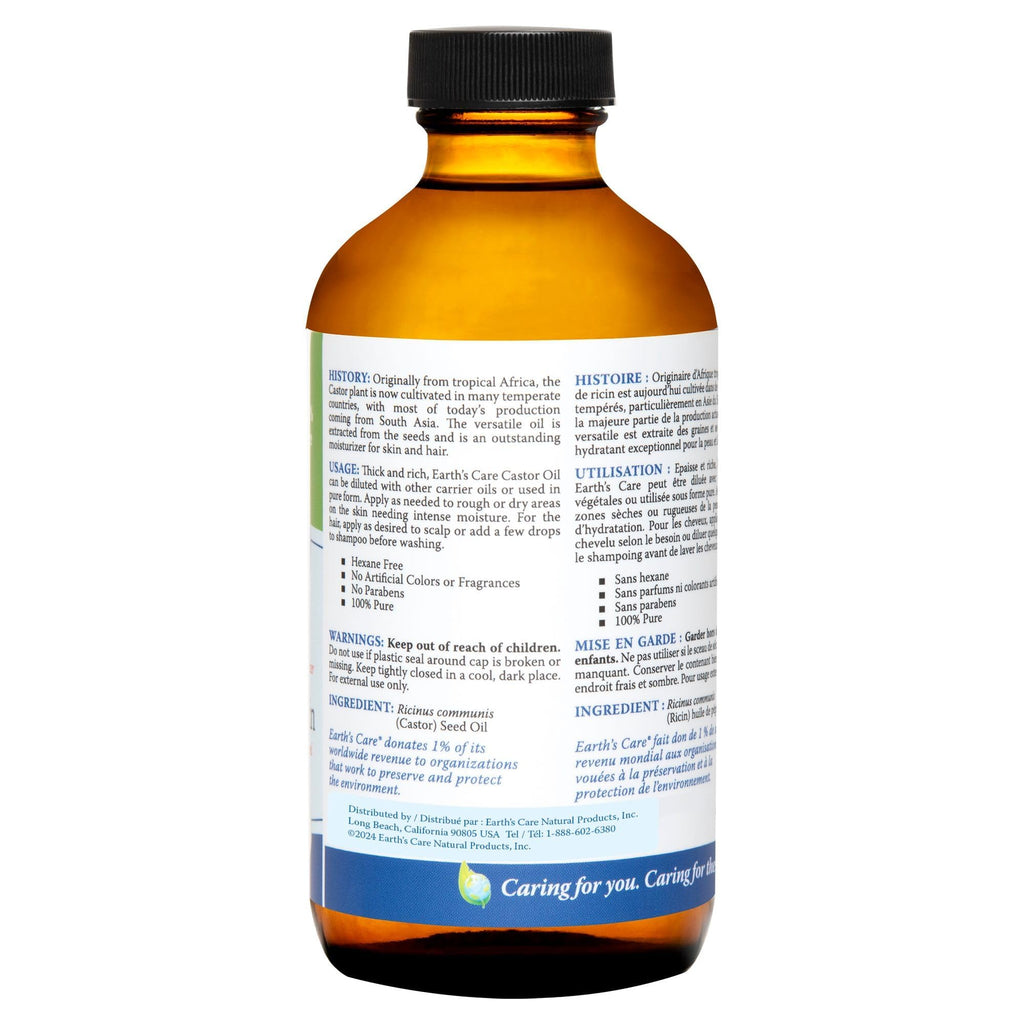 Earth’s Care Castor Oil is a 100% pure, versatile oil that provides intense nourishment for both skin and hair. Expeller-pressed from castor seeds, this thick, rich, fragrance-free oil hydrates dry, flaky skin, promotes softer, smoother skin, and nourishes natural hair for fuller, healthier-looking strands. Ideal as a carrier oil for aromatherapy or for mixing with your favorite shampoo, it offers natural relief and care year-round.