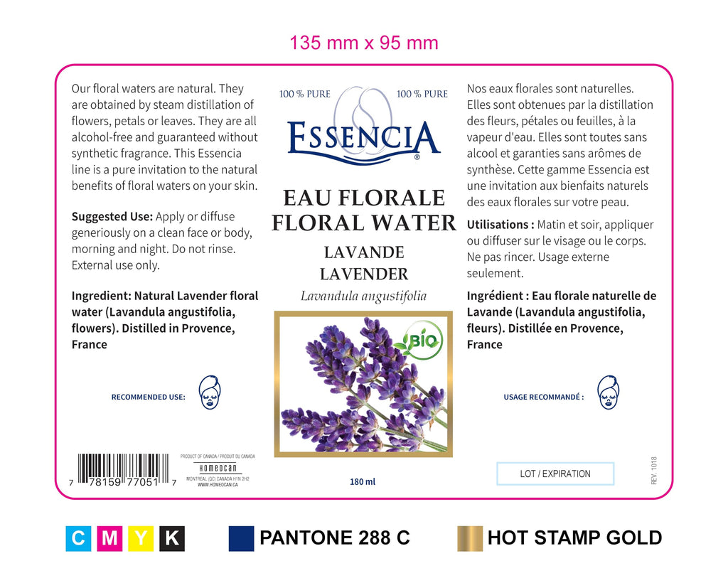 Certified organic Lavender (Lavandula angustifolia) floral water