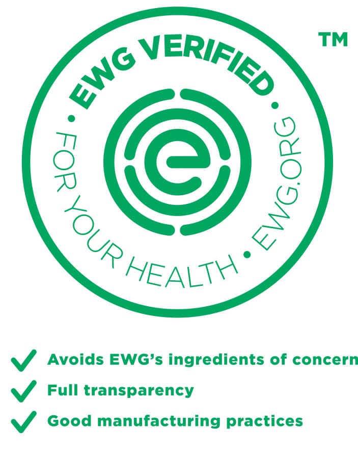 EWG VERIFIED™ means that this product avoids EWG’s ingredients of concern, is committed to full transparency and operates under good manufacturing practices.