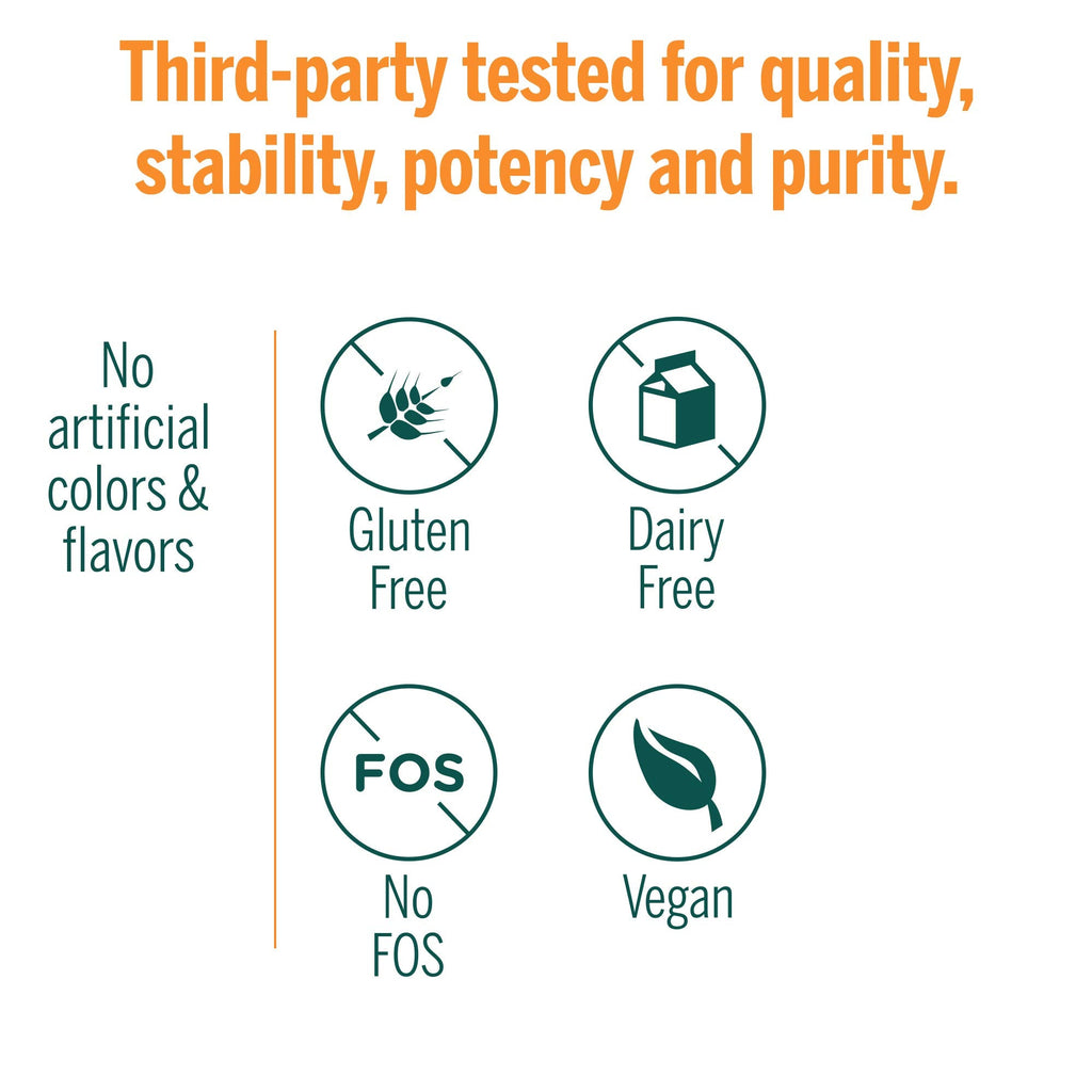 Non-GMO, gluten-free, dairy-free, soy-free, vegan, and FOS-free