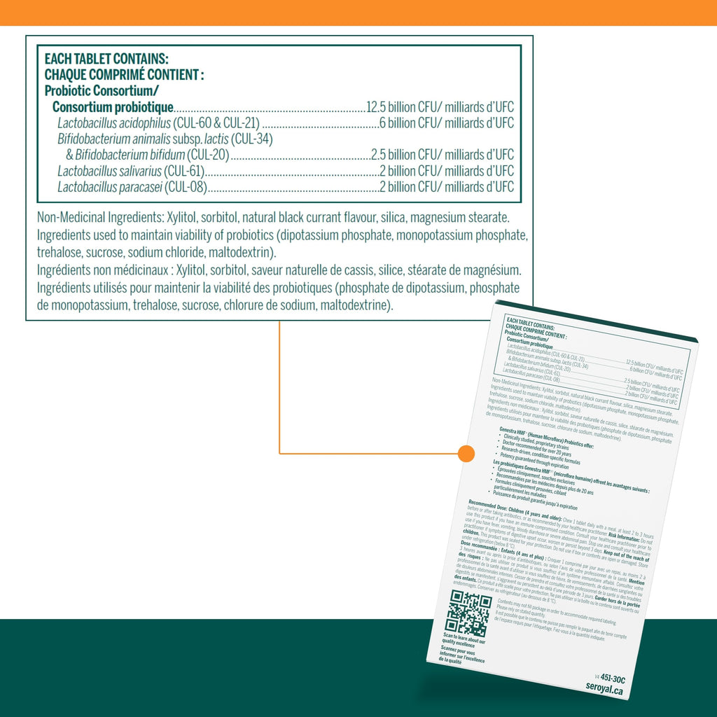 Provides 12.5 billion CFU per chewable tablet from multiple probiotic strains