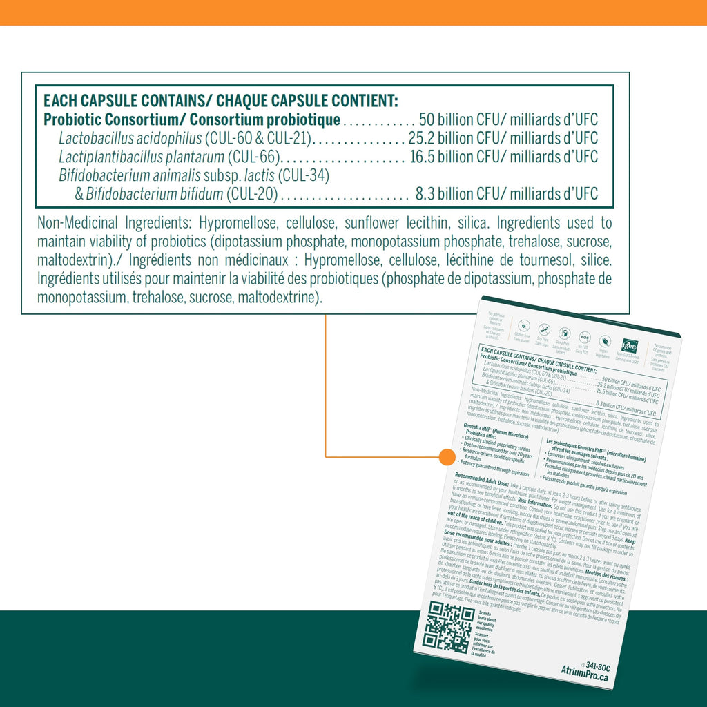 Genestra Brands HMF Metabolic is a professional-grade probiotic formula designed to support gastrointestinal health and metabolic wellness. Each capsule delivers 50 billion CFU from five proprietary probiotic strains, promoting a favorable gut flora. Clinically studied for its effects on body weight, waist circumference, BMI, and lipid metabolism in adults, HMF Metabolic is a targeted solution for digestive and metabolic support. This formula requires refrigeration to maintain culture viability, ensuring maximum potency and effectiveness.