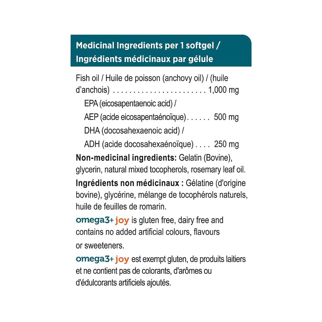 Genuine Health Omega3+ JOY is a premium fish oil supplement designed to support mood balance, cardiovascular health, immune function, and overall wellness. Expertly formulated with clinically proven DHA and EPA, this supplement helps promote positive mood and stress management. Made from wild-caught, sustainably sourced fish, Omega3+ JOY is gluten-free, non-GMO, and triple-cleaned to ensure freshness and a clean, fish-free taste.
