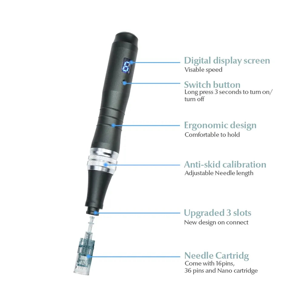 Adjustable Needle Depths: Customize needle length from 0.25mm to 2.5mm for targeted treatments on different areas of the face and body.