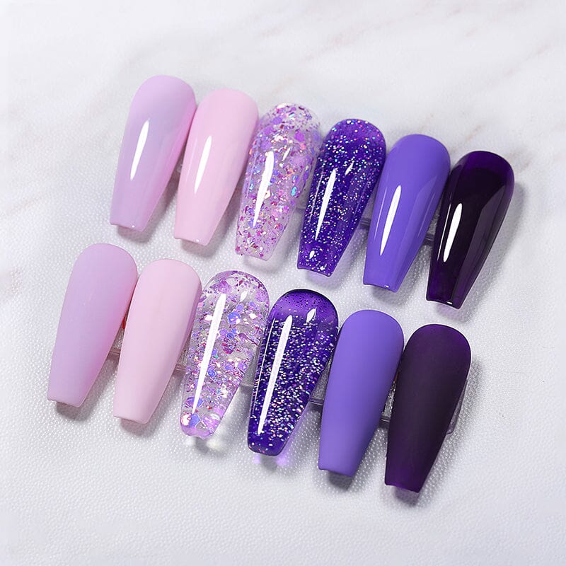 Sparkle and shine with our Purple Glitter 6 Colors Gel Polish Set (10ml)! This enchanting collection features six stunning shades of purple, each infused with dazzling glitter for a glamorous finish. Perfect for adding a touch of sparkle to any manicure, these gel polishes glide on smoothly and cure quickly under UV/LED lamps. The long-lasting, chip-resistant formula ensures your nails remain beautiful and vibrant, making this set ideal for both special occasions and everyday wear. Elevate your nail art with these eye-catching glitter shades that are sure to turn heads!