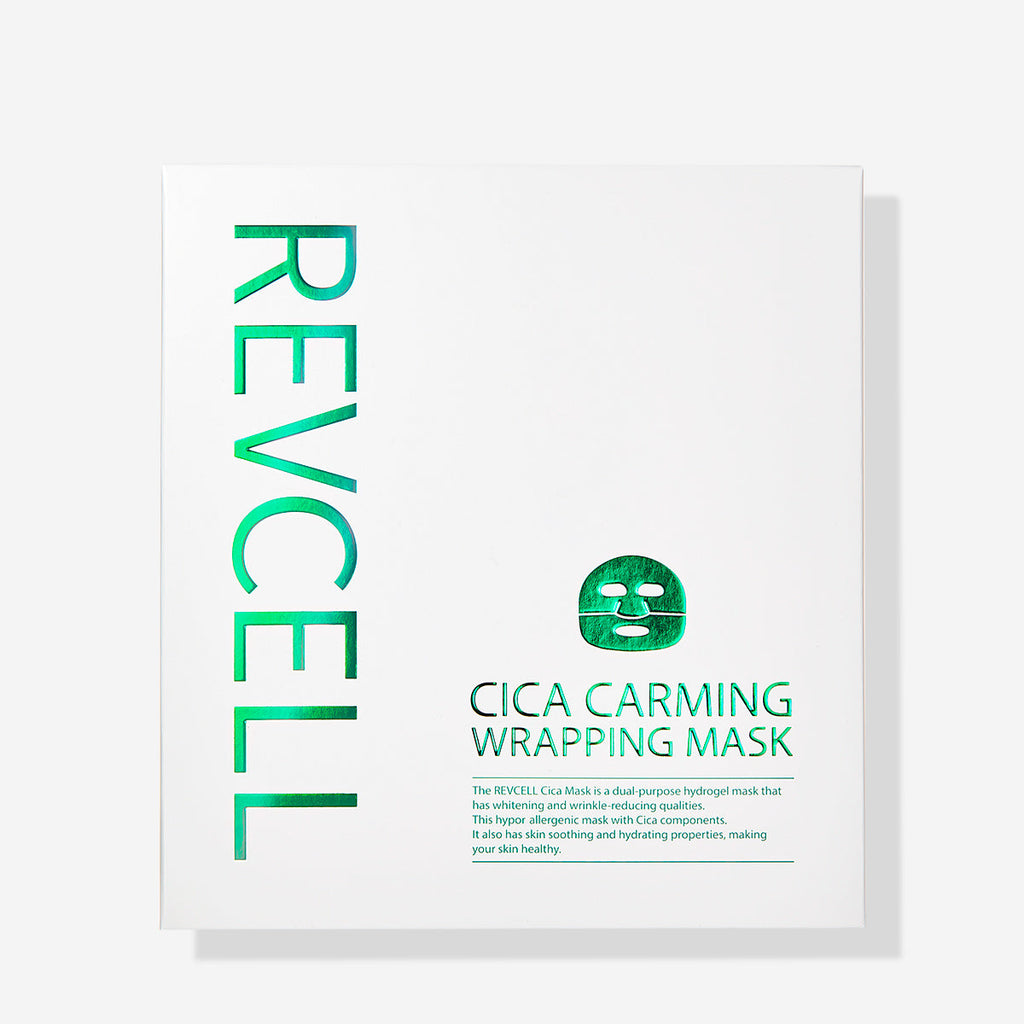 The Revcell Cica Calming Wrapping Mask (5 Sheets) is a refreshing sheet mask designed to soothe, hydrate, and balance the skin. Made with a soft wrapping fabric, it delivers moisture evenly, leaving skin smooth, supple, and radiant. Infused with centella asiatica extract, panthenol, and madecassoside, the lightweight essence absorbs quickly without any residue, helping skin feel fresh, soft, and comfortable. With regular use, skin appears healthier, more even-toned, and revitalized. This calming mask is ideal for all skin types, especially sensitive or environmentally stressed skin, offering a convenient at-home boost for everyday care.