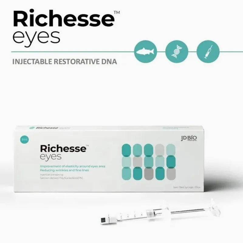 Revitalize your eyes with Richesse Eyes, a premium PDRN skin enhancer specifically designed for the delicate under-eye area. This advanced formula targets dark circles, crow’s feet, and puffiness while stimulating collagen production and skin regeneration. Richesse Eyes deeply hydrates, improves elasticity, and smooths fine lines, leaving your eyes looking brighter, firmer, and youthful. Ideal for those seeking a non-invasive, professional-grade solution to restore vitality and combat signs of aging around the eyes.