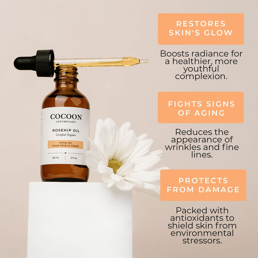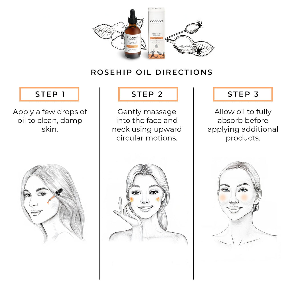 Ingredients: Organic rosehip seed oil, essential fatty acids, antioxidants, natural retinoids