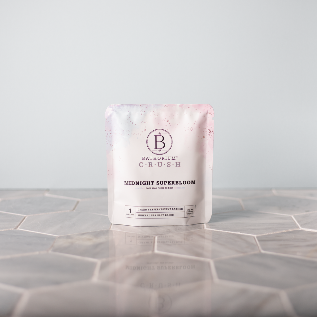 Immerse yourself in the celestial beauty of Midnight Superbloom Crush Soak, a luxurious West Coast superbloom-inspired bath ritual. Infused with jasmine, neroli, Bulgarian rose, and lavender, this soak creates a soft violet-hued bath as butterfly pea flower releases its delicate pigments. Mineral salts and nourishing plant butters hydrate and replenish the skin, leaving it silky smooth. Perfect for spas, wellness centers, or retail distribution, Midnight Superbloom transforms an ordinary bath into a serene, restorative floral escape.