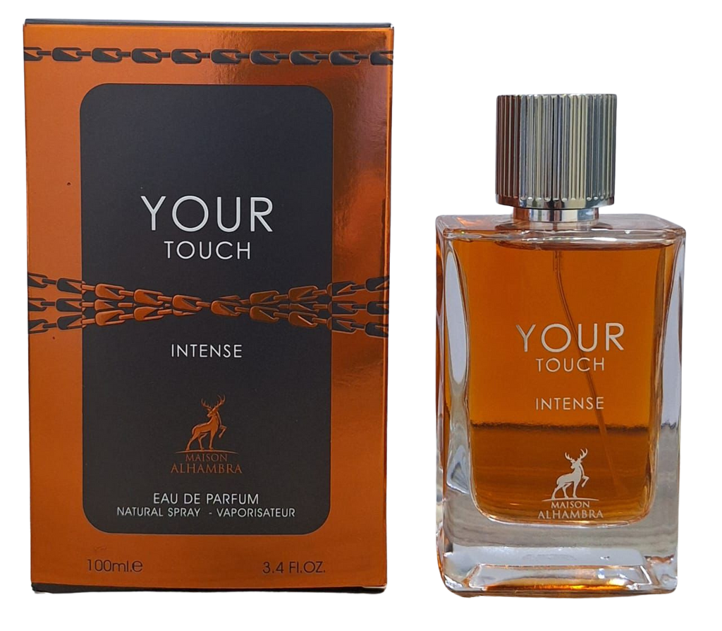 Your Touch Intense by Maison Alhambra is a sophisticated unisex fragrance that blends warm, woody, and aromatic notes for a versatile, everyday scent. It opens with a sparkling mix of cardamom, violet leaf, pink pepper, and mint, leading into a heart of cinnamon, lavender, sage, and tropical hints of watermelon and pineapple. The base of vanilla, chestnut, amberwood, guaiac wood, and cedar adds depth and warmth, leaving a long-lasting, inviting trail. Perfect for both men and women who love a bold yet refined fragrance.